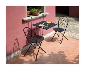 Piccolo tavolo da ringhiera pensato appositamente per chi non dispone di tanto spazio all'aperto.