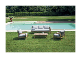 Salotto da giardino in legno di ACACIA e CORDA colore ANTRACITE SET SCILLA da 2 poltrone + 1 divano a 3 posti + 1 tavolino codice SET 166